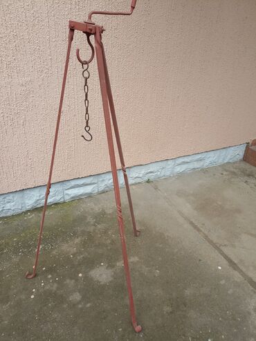 O trošku kupcaTronožac za kotlić sa slike, visine 110 cm,nogare 10 mm x 15 mm puno gvoždje,sa kovanim detaljima, trokraka ploča debljine 20 mm,sa ručicom koja se okreće 360 stepeni.