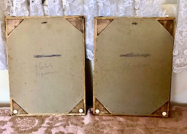 Ručno rađene goblene u bogatim pozlaćenim ramovima Opis: - Set od dva velika goblena, pažljivo izrađena sitnim bodom. - Motiv 1: Pastoralna scena – devojka pored izvora, prirodni pejzaž sa stenama...