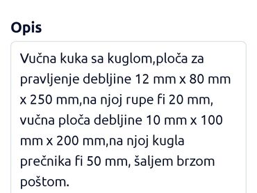Vučna kuka sa kuglom, karakteristike u opisu