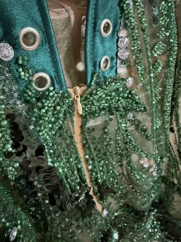 - Detalji: ručno našivene perlice, šljokice i kamenčići u bogatim reljefnim aplikacijama; kristalni ukrasi različitih oblika