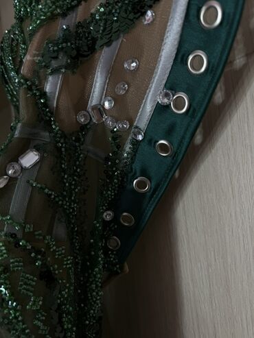 - Konstrukcija: ugrađene korsetne baleine, metalne ringlice/okovi sa strana, skriveni rajsferšlus pozadi