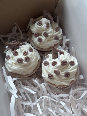 - Izgled: realistične mafin sveće sa “šlag” vrhom, posute minijaturnim zrnima kafe i komadićima čokolade.Napravljena je od 100 posto sojinog netoksicnog voska kao i dodatka netoksicnog cistog mirisnog ulja. Cine je tople note kafe i mlečne čokolade, idealno za ljubitelje slatkastih, prijatnih aroma. Moze se pakovati u poklon personalizovanom paketu i kombinovati sa drugim svecama.❤️