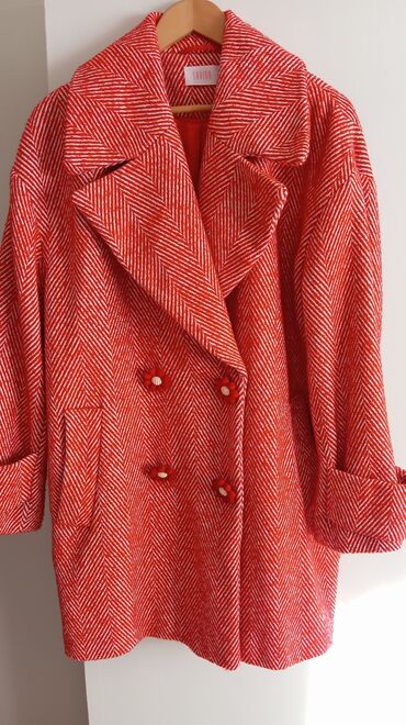 Crveni kaput šara riblja kost . Veličina L. Odlično očuvan, bez oštećenja. Sniženje, finalna rasprodaja. Samo 700 dinara