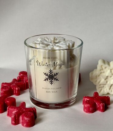 Ručno rađena dekorativna svećica u poklon-aranžmanu - Elegantna crvena dekoracija sa centralnom ružom od tekstila i zelenim listovima. - Sveća obložena srebrnim folija-efektom, ukrašena zlatnim pe...