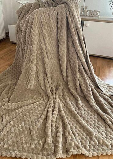 Mekane plišane prekrivače/ćebad sa reljefnim kockastim dezenom. - Materijal: nežni mikropluš (baršunast na dodir), gust i topao, jednostavan za održavanje. - Tekstura: reljefne „jastučić” kocke ko...