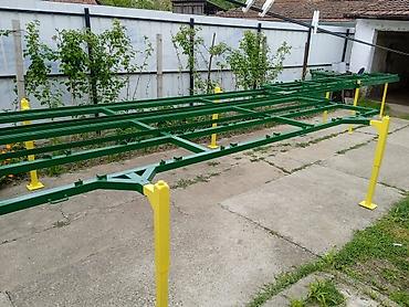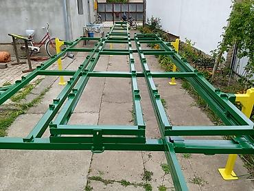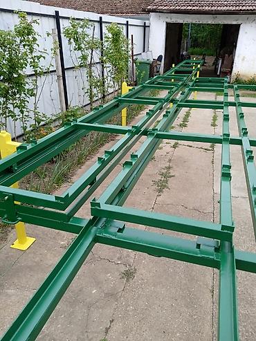 - Robusna konstrukcija od čeličnih profila, farbana u industrijskoj zaštitnoj boji (zelena konstrukcija, žuti nosači/stubovi).