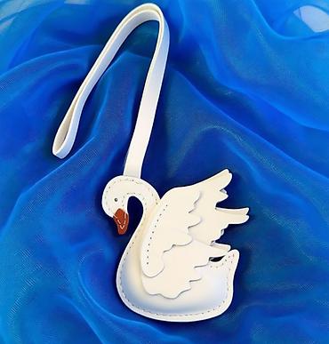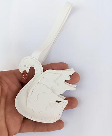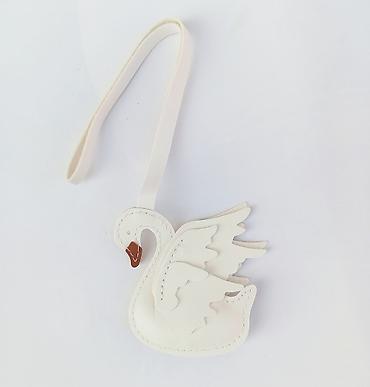 Privezak u obliku labuda – ručno izrađen - Materijal: bela eko koža