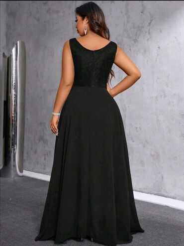 CvetniElegantna duga crna haljina bez rukava u XL veličini.