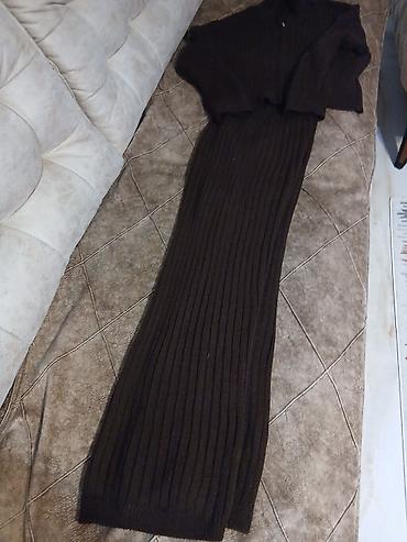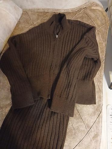 Trikotazni komplet u braon boji nov .ne odgovara broj.Prelep za prelazno vreme .Gornji deo je kraci dzemper br m moze i L .Odgovara vitkim i visokim devojkama ekstra komplet.devojke 174 odgovara duzina