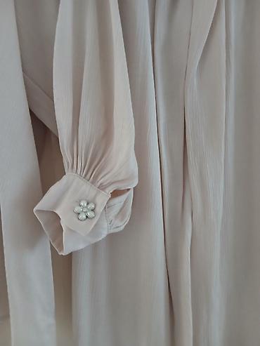- Košulja: dugi, široki rukavi sa manžetnama; ukrasno dugme u obliku cveta sa bisernim efektom; bogati nabori napred; visoka kragna sa dugom trakom/mašnom za vezivanje.