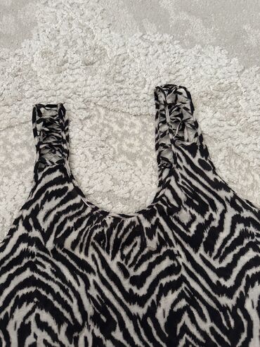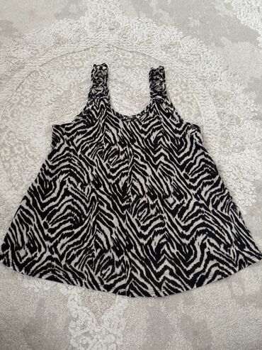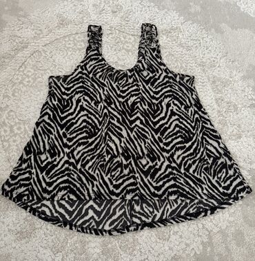 Ženska bluza Giyas – veličina S - Model sa 3/4 rukavima - Kombinacija printova: plavi ornamentalni/valoviti motivi i crno‑beli print imitacije zmijske kože - Okrugli izrez sa malim prorezom i ukra...