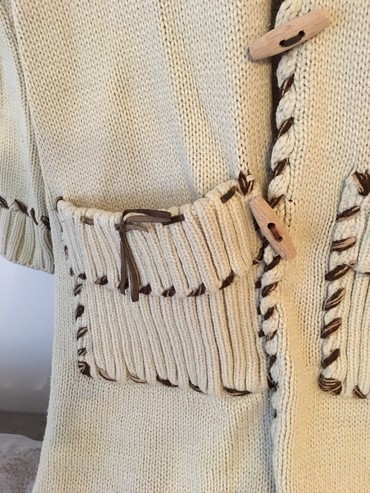 Ženski pleteni kardigan sa kapuljačom - Model: dugi kardigan, otvorenog kroja (bez dugmadi/rajfešlusa) - Boja: svetlo bež/ puder nijansa - Materijal: meko, deblje pletivo sa izraženim kabl (uplete...
