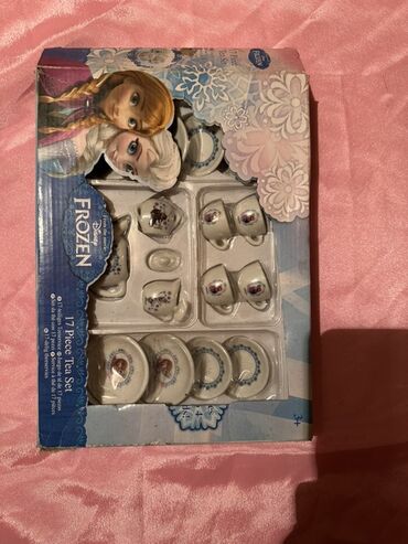 Materijal: porcelan/keramika. Dekor: likovi iz Frozen-a i zimski ornamenti u plavo-belim tonovima. Namenjeno za dečju igru i maštovite čajanke. Na pakovanju označeno 3+.