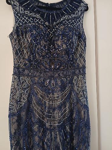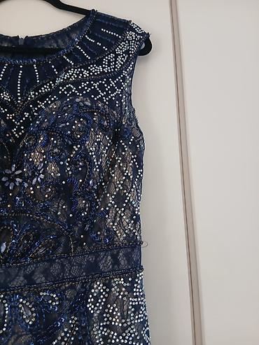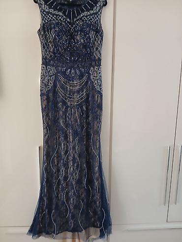 Elegantna večernja haljina – tamnoplava - Kroj: duga, uska silueta