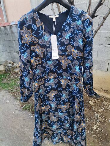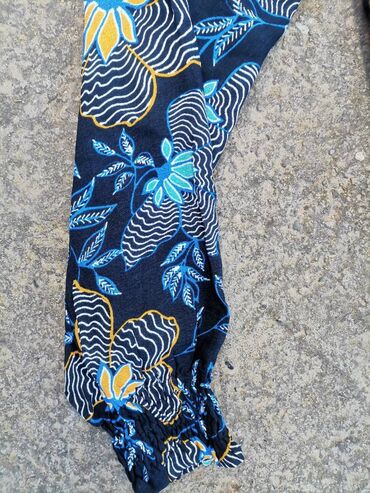 Elegantna haljina sa gornjim delom u plavo-crnom dezenu i crnom suknjom. Velicina 48. - Kroj: midi dužina, naglašena struk linijom sa nabráním, blago puf rukavi do zgloba. - Materijal: satenski sja...