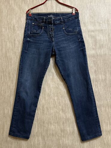 Gina benotti - jednom obučene farmerke, boyfriend. Stanje: kao novo. Imaju elastina. Tamno plave. Veličina 40. Mere: dužina 96 poluobim struka 40 butina 28 kukovi 50 širina nogavice na dnu 16