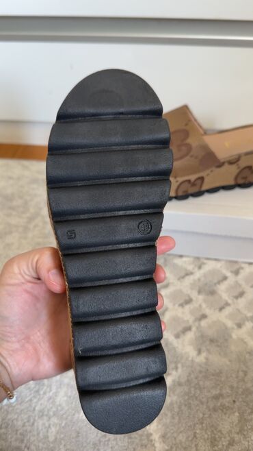UGG ženske papuče sa platformom i krznenim obodom - Model: klompa/papuča sa otvorenom petom i elastičnom trakicom sa UGG logotipom za stabilno prijanjanje. - Gornjište: meka brušena koža (semeš) u...