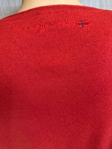 NAPAPIJRI original unisex džemper od 100%vune. Stanje: kao nov. Veličina S, ali je veći. Moja veličina je L i taman mi je. Džemper je zaista prelep, boja cigle. MERE: dužina 63 poluobim grudi 53 širina ramena 38 dužina rukava 67