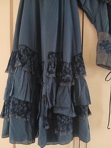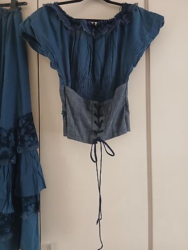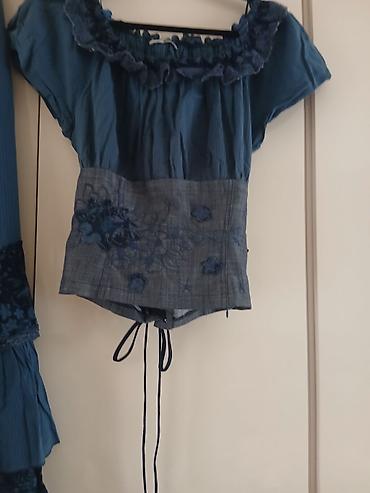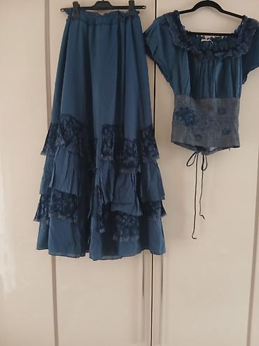 Komplet bluza + duga suknja u boho/romantičnom stilu, teget–plava