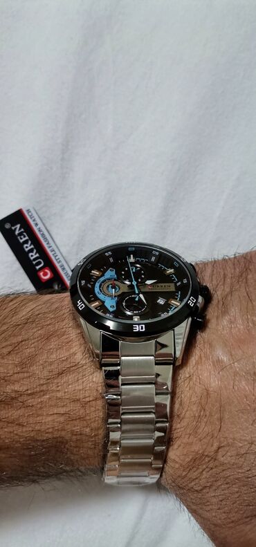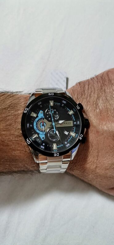 Muški sat marke Curren sa analognim ekranom i kvarcnim mehanizmom. Sat poseduje srebrno kućište i narukvicu od nerđajućeg čelika, što mu daje elegantan i izdržljiv izgled. Crni brojčanik sa belim i plavim detaljima, kao i tri podbrojčanika, upotpunjuju sofisticiran dizajn. Idealan je za svakodnevno nošenje ili posebne prilike. Funkcija datuma dodaje praktičnost. Moderan i pouzdan dodatak za svakog muškarca.