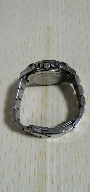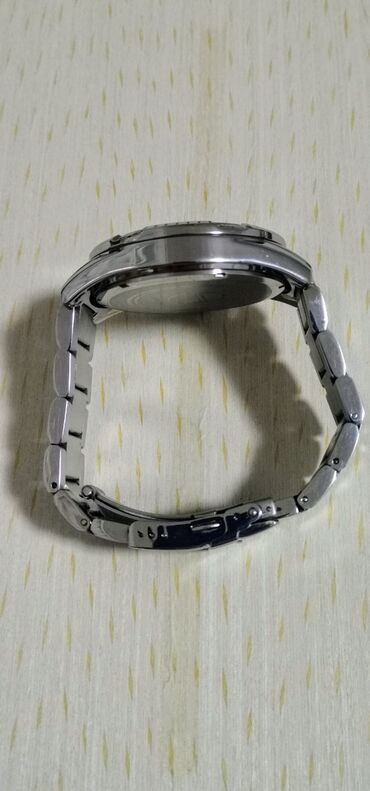 - Kućište i narukvica od nerđajućeg čelika u srebrnoj boji, masivni trodelni linkovi, preklopna kopča sa sigurnosnim pritiskom.