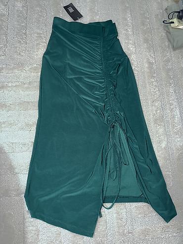 Crna ženska suknja do ispod kolena, od mekane rebraste somot/kords (corduroy) tkanine. Brend: Gepard. Klasičan kroj sa pojasom i belt petljama, kopčanje napred na dugme i rajsferšlus. Dva praktična...