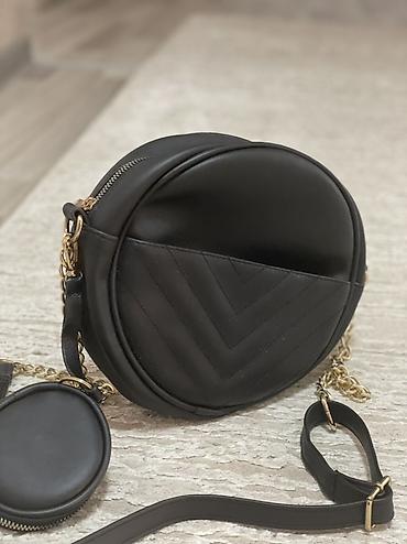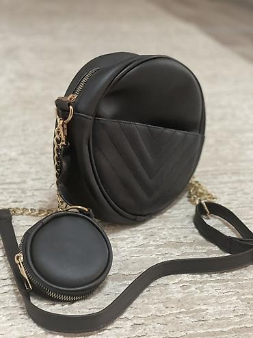 Okrugla crna torba preko ramena sa dodatnom mini torbicom