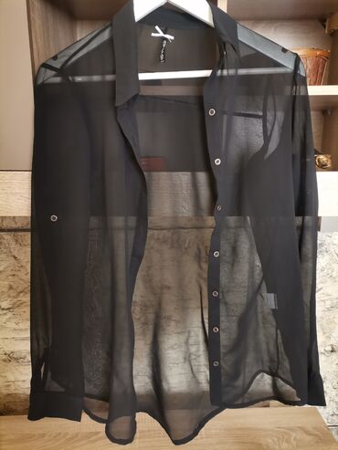 Poluprozirna crna košulja, kao nova. Poliester. Veličina 40