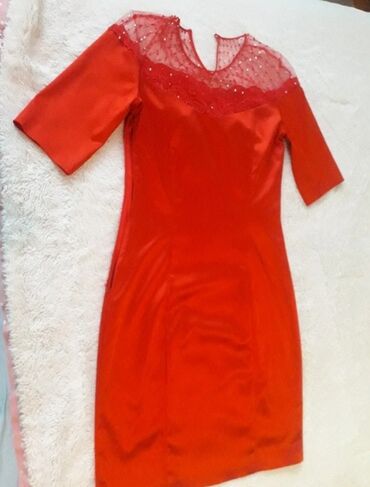 ROMAN Svilena haljina, obucena jednom. Prava svila. Haljina je postavljena, Dimenzije su date. Odgovara velicini M...dobijate poklon uz kupovinu haljine