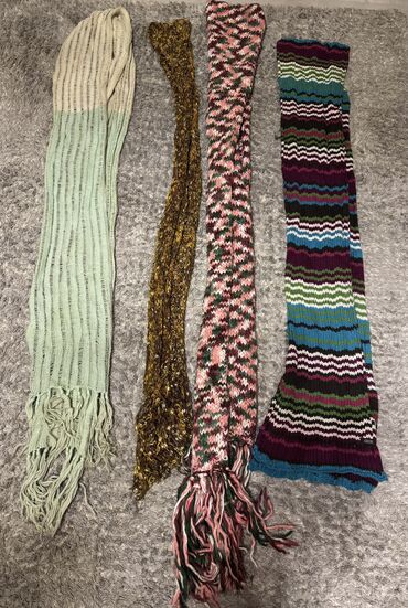 Šalovi ručno pleteni, novi 4 kom sve za 1500 din. Plavi 150x14 cm, crveni 115x14cm, roze 170x16. Može i na komad.
