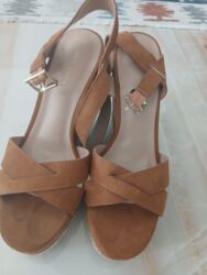 AntilopSandale braon boje od prevrnute koze visina platforme 10 br 39 odgovara br 38