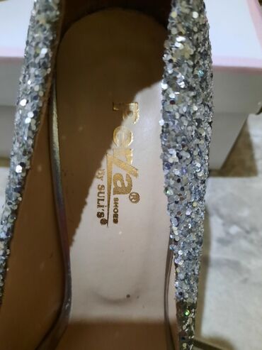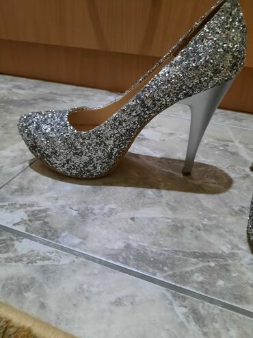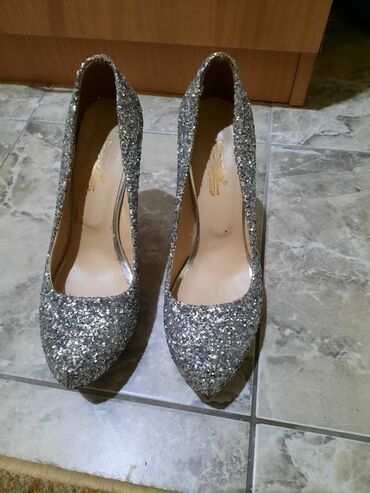 Elegantne damske salonke u srebrnoj boji. - Model: klasične špic salonke sa srednje visokom potpeticom (tankom). - Veličina: 40 (oznaka na đonu). - Materijal gornjišta: sintetički (oznaka na đonu)....17 000 RSD
