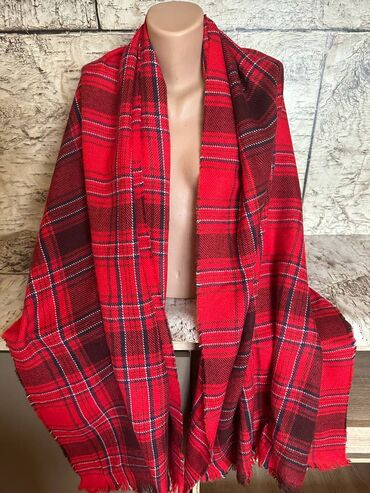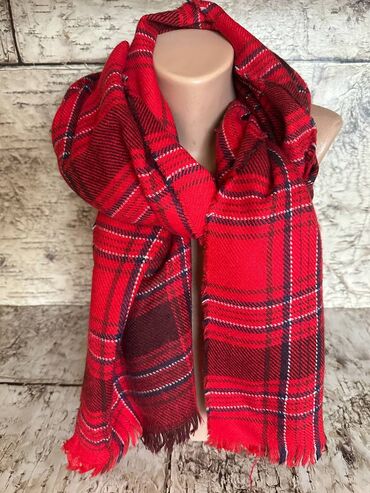 Šal sa karo dezenom - Boja: topla braon osnova sa crnim, belim i crvenim linijama (klasični karo uzorak) - Dimenzije: 130 x 30 cm (navedeno na fotografiji) - Materijal: mekana, nežna tkanina prija...