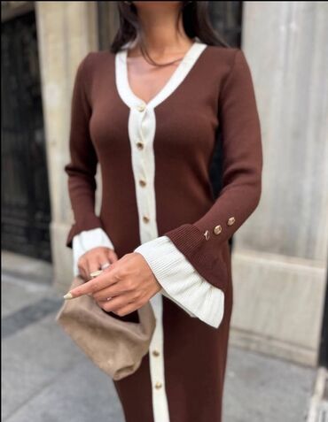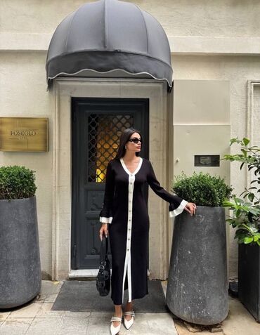 - Detalji: kontrastne ivice duž cele prednje strane, oko izreza i na manžetnama; mali prednji prorez pri dnu za lakše kretanje