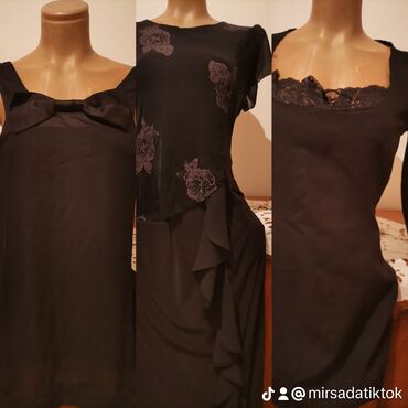 - Crna haljina sa kvadratnim izrezom i nežnom čipkom na dekolteu, ženstvena linija.