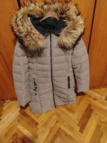 Ženska zimska jakna/kaput sa krznom - Boja: svetlo bež pudrasta