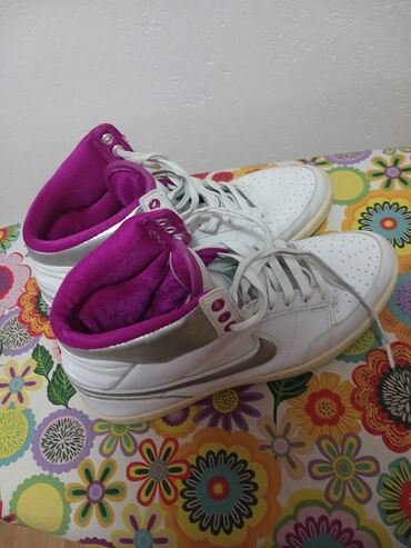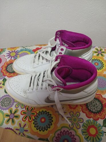 - Boja: bela sa srebrnim Swoosh logoom i detaljima, unutrašnjost u jarko ljubičastoj/ružičastoj boji