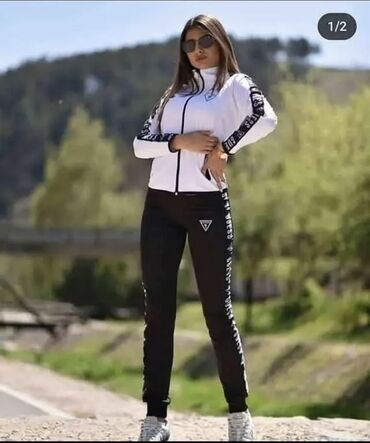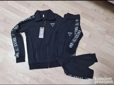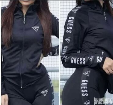 - Brendiranje: GUESS logo i traka sa logotipom duž rukava i nogavica; trokutasti logotip na grudima i kuku