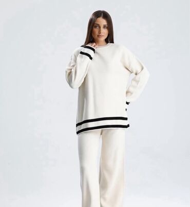 - Dvodijelni set: džemper sa okruglim izrezom + široke ravne pantalone.