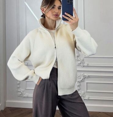 - Kroj: blago oversized, raglan rukavi, duži manžetni rubovi; može da se nosi zakopčano do visokog okovratnika ili otvoreno kao kardigan