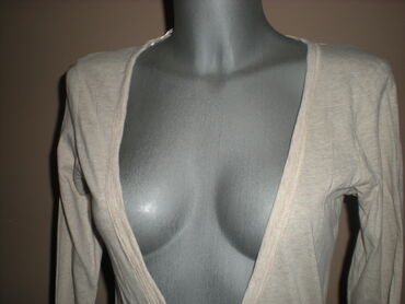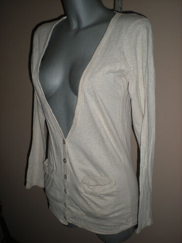 Pamučni kardigan melirane bež boje, sa dva džepića napred.