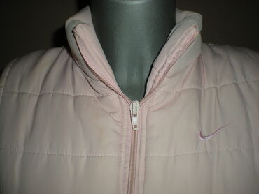 Presladak prsluk, futrovan, u osnovi bebi roze boje, sa belim i teget detaljima.
