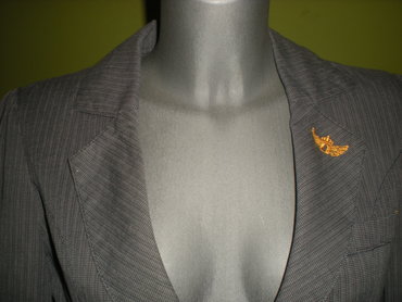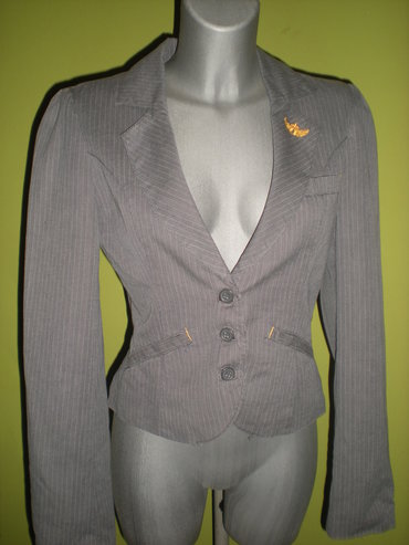 Fantastičan sivi sako na diskretne linijice, i žutim detaljem/vezom napred.