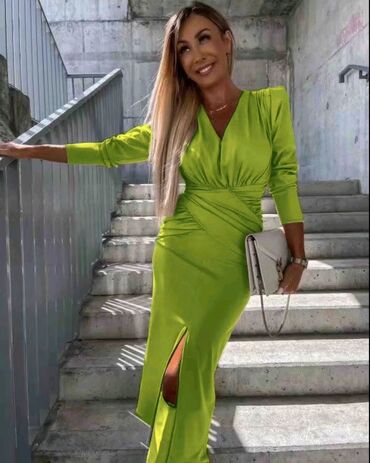 Elegantna maslinasto zelena midi haljina bez rukava. - Kroj: uska silueta sa mekim, bogatim naborima na gornjem delu i asimetričnim drapiranjem preko kukova. - Dužina: midi, do članka. - Izrez: ok...2 500 RSD