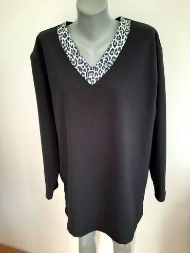 Tunika od viskoze i pamuka , sa V izrezom, animal printa, kraćih rukava, M veličine, dobro očuvana, veoma praktična, lagana, bez obzira na kraće rukave nosiva kroz sva godišnja doba. Prednji deo do...