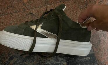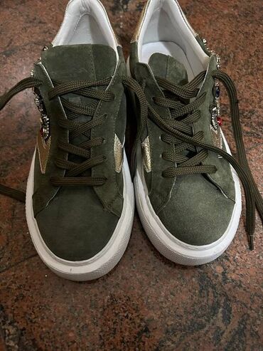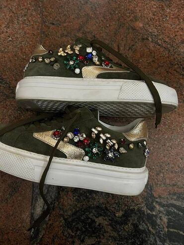 UpotrebljenоTosca Blue patike, zelene boje, kombinacija koža-velur. Broj 38 , gazište je 24cm. Tri puta obuvene ali su nažalost knap. Jedan cirkončić mali fali, ali se ne primeti. Sve se vidi na slikama. Veoma udobne i lagane, praktične za suknje, haljinice, pantalone i trenerke.