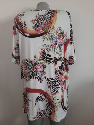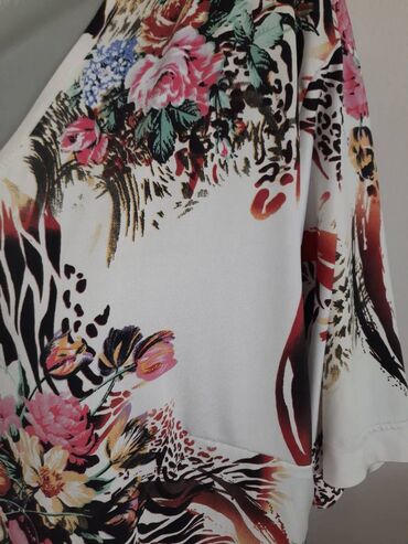 Tunika od viskoze i pamuka , sa V izrezom, animal printa, kraćih rukava, M veličine, dobro očuvana, veoma praktična, lagana, bez obzira na kraće rukave nosiva kroz sva godišnja doba. Prednji deo do...
