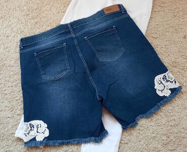 Sivi teksas šorts FB Sister – veličina S - Model: high-waist, klasičan petodžepni kroj (2 prednja + džepić za novčiće, 2 zadnja džepa) - Materijal: denim bez elastičnog dodatka (čvrst pamučni teks...