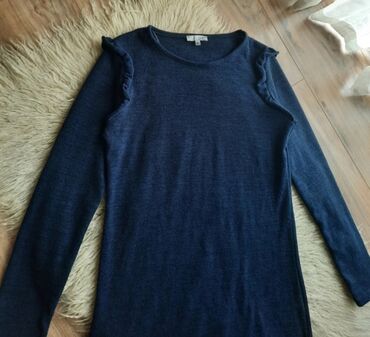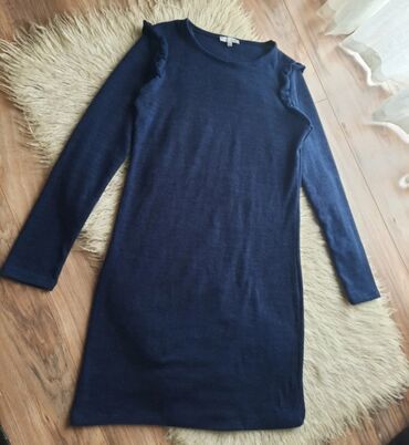 Ribana džemper-haljina, tamnosiva/ugalj boja. - Kroj: uska silueta, midi dužina (ispod kolena), bočni šlic za lakše kretanje - Materijal: elastičan plet (rebrasti dezen) koji prati liniju tela i p...