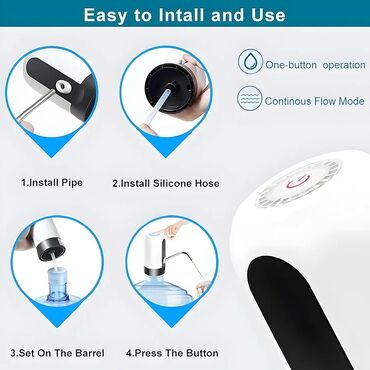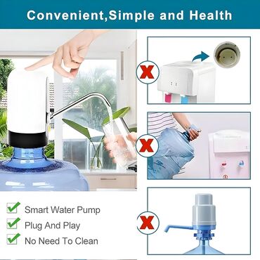 - Bežična, punjiva pumpa koja se postavlja direktno na balon sa vodom i omogućava točenje pritiskom na jedno dugme.